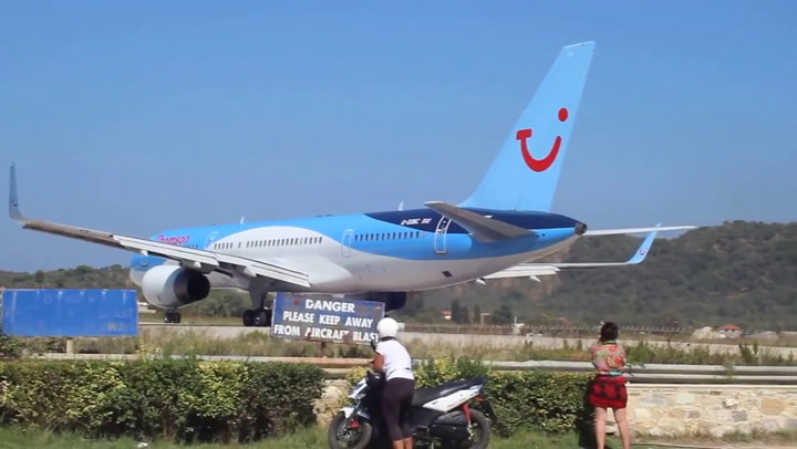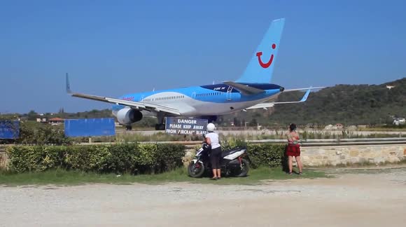 Il momento dell’atterraggio e del decollo, è insomma diventato un’attrazione per turisti. Qualcosa potrebbe però andare storto_ è il caso di questo giovane che vola via con tutto lo scooter a causa della potenza del motore del Boeing, appena azionato dal pilota che sta per alzarsi in volo.