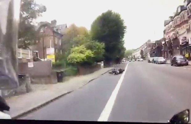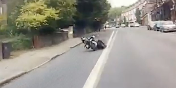 LONDRA – Sorpasso azzardato a Archway road, strada a nord di Londra. Un motociclista tenta un sorpasso azzardato su una ruota sola e a velocità eccessiva. Il risultato è che finisce rovinosamente a terra sull’asfalto. A differenza però di quello che si potrebbe credere, il ragazzo alla guida del bolide si rialza in piedi quasi subito.