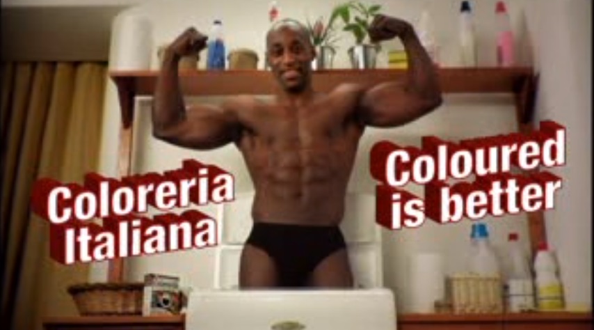 Il punto è che lo spot cinese in questione fa in qualche modo il verso a una pubblicità italiana che qualche tempo prima aveva fatto discutere e non poco. Quello della Coloreria italiana. Identico il canovaccio opposto il risultato. Qui un uomo bianco diventa un muscolosissimo nero.