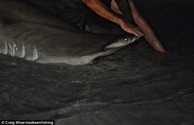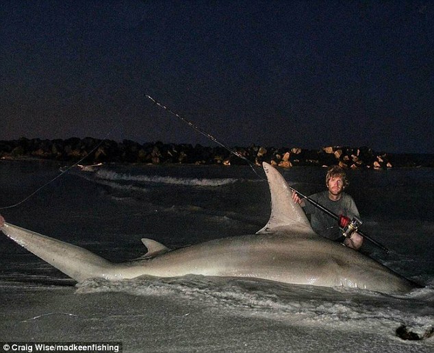 Dennis nelle foto appare mentre apre la bocca allo squalo che mostra così i suoi denti aguzzi. Palmer, in un’altra foto appare con un metro in mano mentre misura la lunghezza dell’animale. Per pescare, i due uomini hanno raccontato di aver utilizzato un cefalo fresco e delle triglie. “L’esca è rimasta in acqua bagnato per poco meno di dieci minuti” ha detto il 25enne Jamie Dennis. Xtremebraid, marchio americano che vende strumenti per la pesca, ha detto che giudicando da quanto si vede nel video lo squalo potrebbe aver superato il record mondiale non ufficiale.