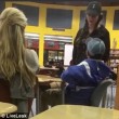 PHILADELHIA – Una ragazza di un liceo aggredisce il suo compagno di classe perché non le piace la suoneria del suo cellulare. Il filmato che proviene dalla Pennsylvania negli Stati Uniti, è stato pubblicato su LiveLeak e YouTube. La ragazza scatta in piedi e comincia a picchiare il compagno di classe maschio che resta tutto il tempo seduto sulla sedia. I due sembrano prima parlare, poi la suoneria evidentemente non gradita alla giovane la fa scattare.