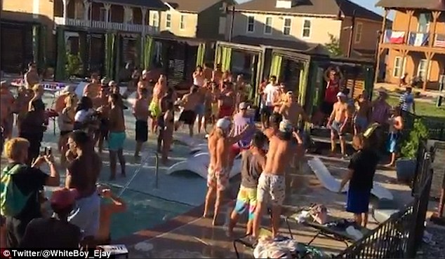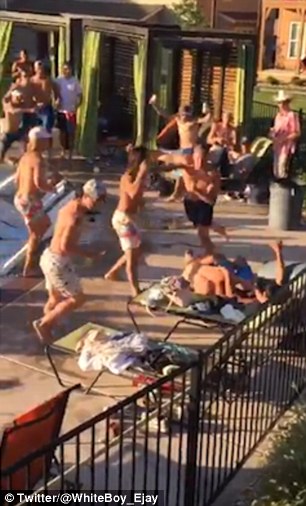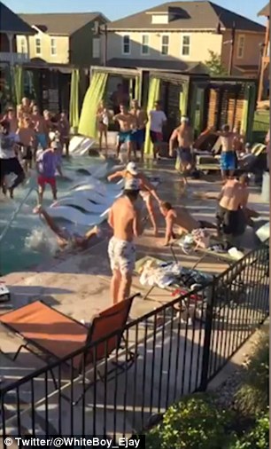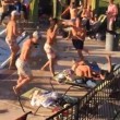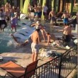 SAN MARCOS – Una festa in piscina si trasforma in una mega rissa. Accade a San Marcos in Texas: a darsele sono decine di persone in costume. La rissa scoppia tra i lettini e le sedie a sdraio. La rissa prosegue con un ragazza che sfodera una mossa di arte marziale che fa finire a terra vicino a secchioni dell’immondizia un altro ragazzo e con un uomo che cade in acqua dopo aver ricevuto un cazzotto.