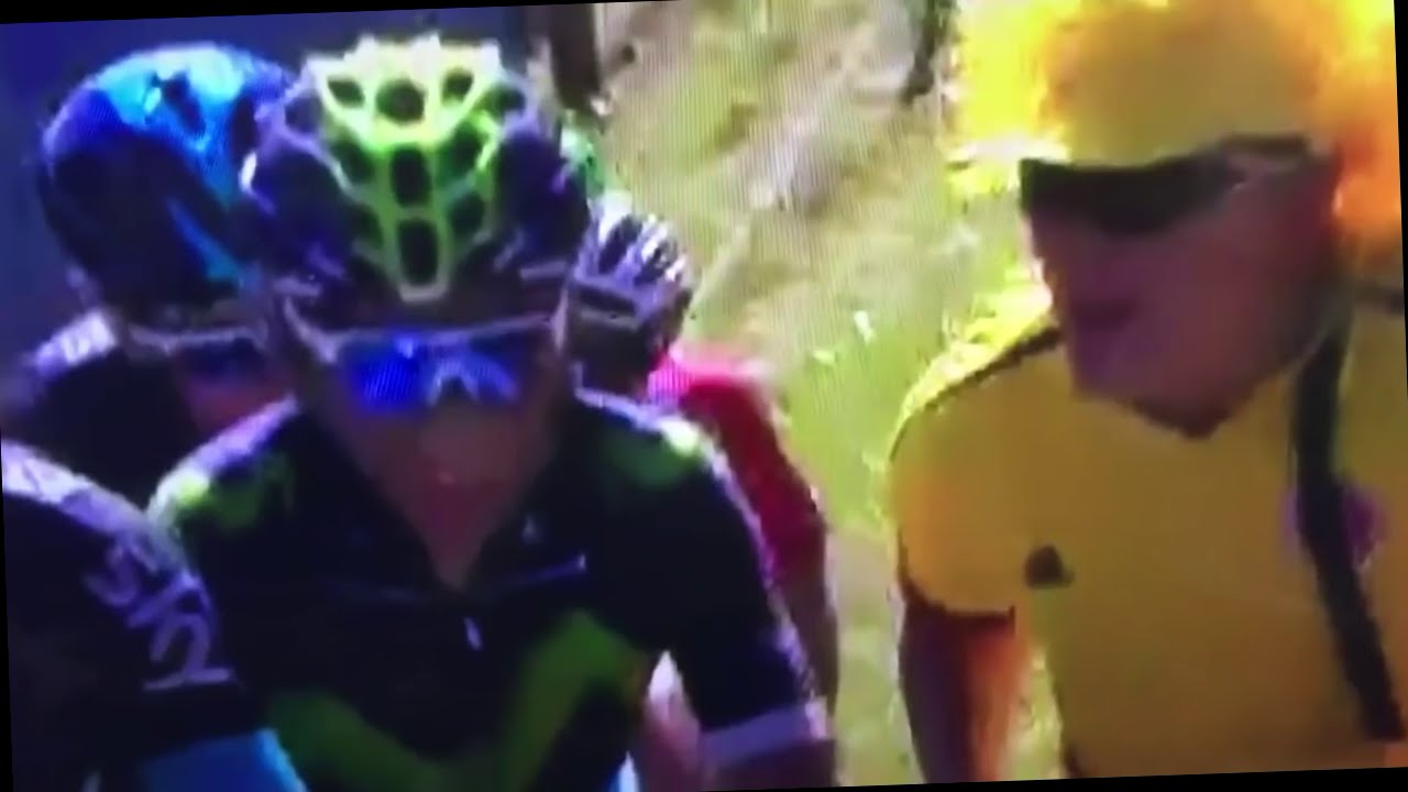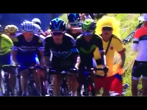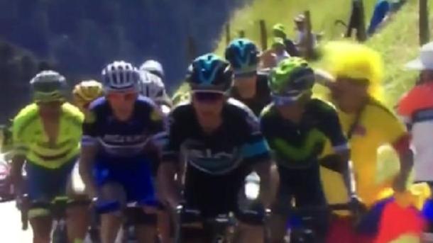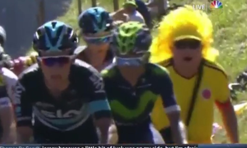 Il tifoso aveva indosso la maglietta della nazionale di calcio colombiana e una vistosa parrucca bionda e molto probabilmente è un fan di Nairo Quintana, il principale avversario di Froome in questo Tour.