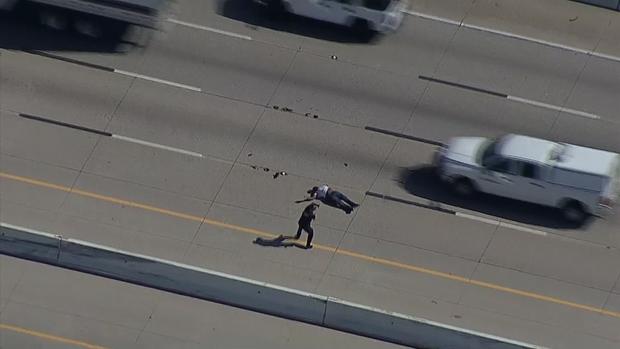 GARLAND – La fuga di un uomo accusato di aver rubato in un centro commerciale di Garland in Texas viene fermata sull’autostrada, in mezzo alle auto che sfrecciano. Accade nei pressi di Dallas: la polizia ha fermato il sospettato sparandogli a distanza con il taser, la pistola che rilascia scariche elettriche a basso voltaggio con lo scopo di fermare la gente che sta commettendo dei reati.