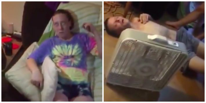 “Non potete fare queste cose con i vostri figli in casa” dice il ragazzo che sta riprendendo la scena. La ragazza punta il flash del suo smartphone negli occhi della donna che sta seduta sul divano, poi prende a calci il padre che sta sdraiato senza maglietta a terra, con la speranza che riprenda i sensi.