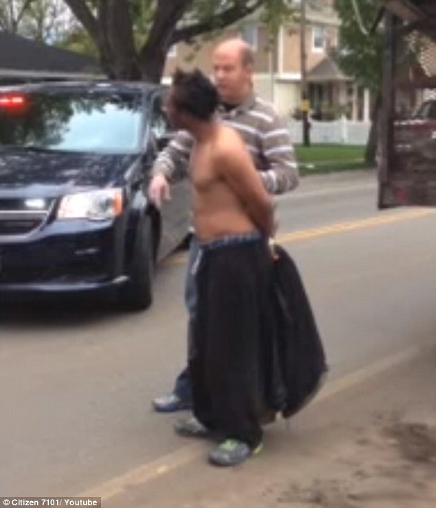 Thomas chiede all’agente di potersi liberare e ad un certo punto si toglie la giacca sperando di riuscire a far mollare la presa all’agente. Anche la Rowles, la donna che sta riprendendo la scena, cerca di intervenire dicendo all’agente che Thomas nom ha fatto nulla di male. Alla fine, un secondo ufficiale di polizia arriva e blocca definitivamente le mani di Thomas. La donna che riprende la scena dice di voler testimoniare a favore di Thomas che intanto viene fatto salire su un’auto della polizia.