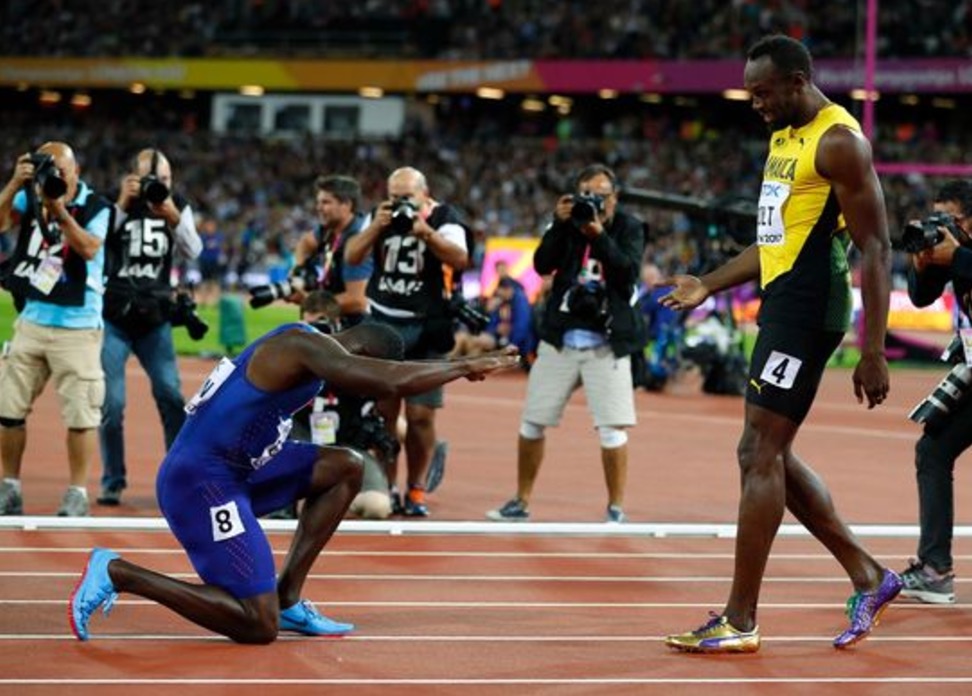 Usain Bolt abbraccia Gatlin