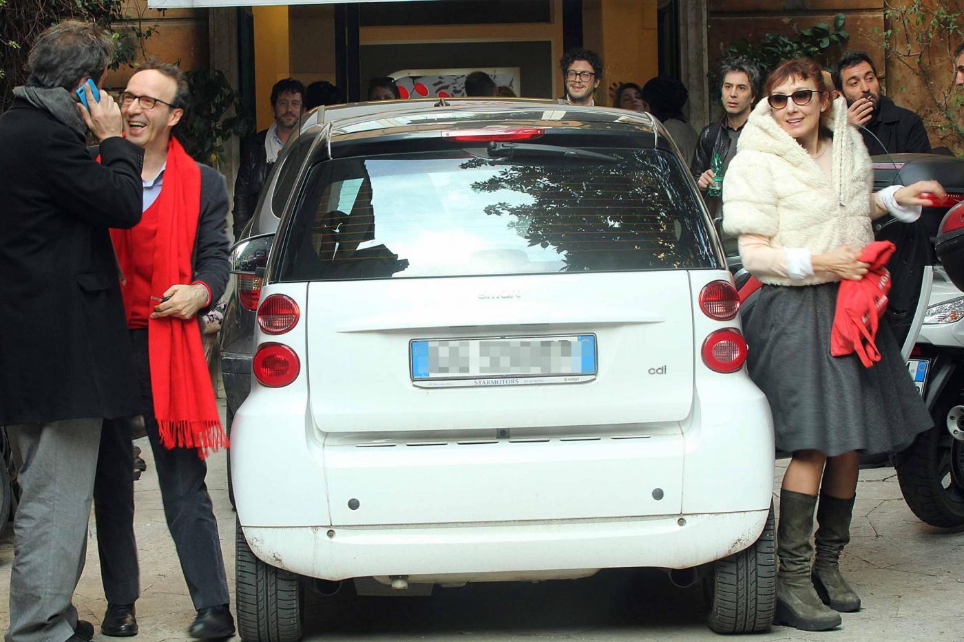 Pomeriggio in centro per Roberto Benigni e la moglie Nicoletta Braschi che si recano nel centro di produzione dove visionare alcune scene del prossimo film.