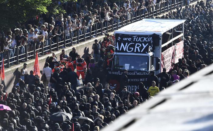 Alla vigilia del summit, infatti, migliaia di manifestanti si sono radunati nella zona nota come “il mercato del pesce” e hanno dato il via al corteo contro i grandi della terra. Lo slogan è “Welcome to Hell”. La polizia in assetto anti sommossa ha presidiato la zona da dove è partita la marcia fin dalle prime ore del pomeriggio del 6 luglio. Poi la situazione è degenerata quando alcuni dimostranti hanno lanciato oggetti, mattoni e bottiglie contro le forze dell’ordine, che a quel punto hanno fatto uso di idranti e spray urticanti per disperderli. La polizia ha precisato di avere ripetutamente chiesto ad un gruppo di irriducibili manifestanti anticapitalisti di togliersi le maschere senza però riuscirci e ha poi deciso di separare il gruppo in questione dalle altre migliaia di dimostranti con gli idranti.