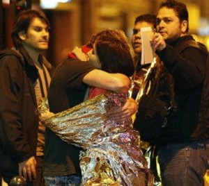 Un’altra testimonianza, stavolta di una donna italiana, Laura Apolloni al Gr1: “Durante il concerto si sono sentiti gli spari. Erano due persone con le mitragliette, hanno sparato per 10 minuti ininterrottamente, avranno sparato 5000 proiettili e io ne ho preso uno. Anche se si stava bassi, raso terra, hanno sparato così tanto…”, ricorda con voce flebile al telefono dall’ospedale. “Io per fortuna stavo sotto il palco e sono fuggita passando dietro le quinte, sfondando le uscite di sicurezza e passando sui tetti. Io e un’altra cinquantina di persone, quindi non abbiamo vissuto l’incubo di dentro”, aggiunge. “Siamo rimasti due ore in silenzio, poi le forze di sicurezza ci hanno tirati giù dal tetto”.