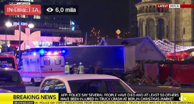 ROMA – Le forze speciali della polizia tedesca hanno fatto irruzione in un hangar dell’ex aeroporto di Tempelhof, a Berlino, diventato un alloggio per rifugiati. Lo riferisce il quotidiano Express. Il blitz arriva a poche ore dalla strage al mercato di Natale, dove un camion lanciato contro la folla ha fatto almeno 12 morti: il conducente e presunto terrorista, secondo indiscrezioni rilanciate dalla Bild e confermate dalle autorità, sarebbe un cittadino pachistano di 23 anni, entrato in Germania a febbraio come richiedente asilo attraverso la rotta balcanica.