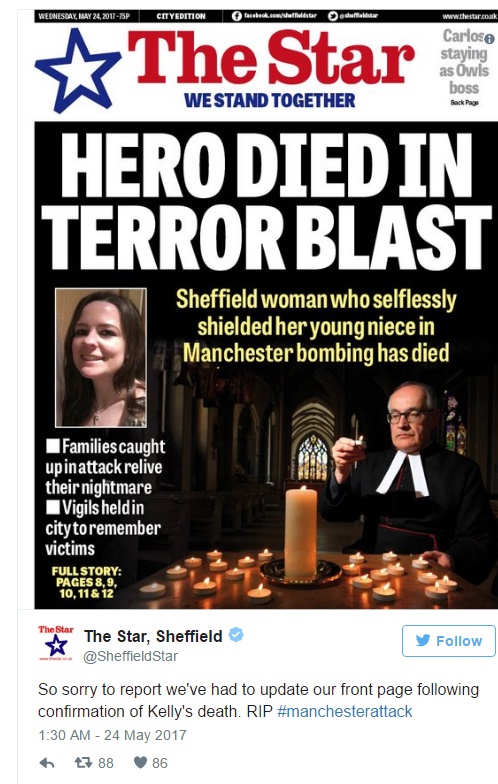 LONDRA – Col suo corpo ha fatto scudo alla sorella e alla nipotina. Kelly Brewster, coraggiosa zia di 32 anni, è una delle vittime dell’attentato terroristico a Manchester. Aveva accompagnato sua sorella Claire e la nipotina Hollie Booth al concerto del loro idolo, Ariana Grande. E’ grazie al sacrificio di Kelly se le due giovanissime, entrambe ferite nell’attacco, sono ancora vive.