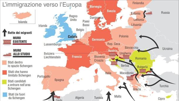 ROMA – I commercianti e gli agricoltori di Calais chiudono le strade per protesta contro il campo profughi chiamato la Giungla, Londra invece annuncia che entro l’anno costruirà un muro anti-migranti. Ma qual è il flusso migratorio dei clandestini in Europa? I migranti arrivano dal nord Africa e dal medio oriente passando per l’Italia, la Spagna e l’est Europa. La Francia d’altronde è il paese Ue che ha limitato Schengen, come anche Germania, Austria, Norvegia e Svezia. La Gran Bretagna invece è fuori da Schengen e si dichiara pronta a realizzare il muro, anche se c’è chi non è d’accordo ritenendolo uno spreco di soldi pubblici.