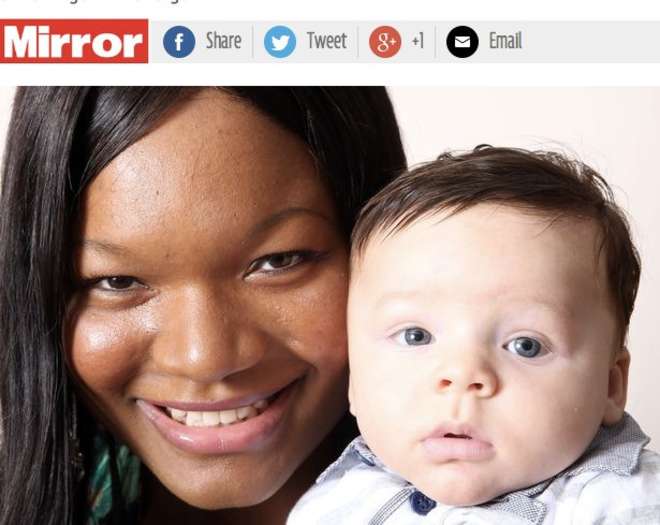 LONDRA – Una donna di colore ha partorito un bambino bianco. Questa la storia di Catherine Howarth, una donna inglese che è rimasta stupita dall’accaduto. Nonostante il papà del bimbo sia bianco, la probabilità che il piccolo nascesse con la pelle bianca e gli occhi azzurri è di uno su un milione.