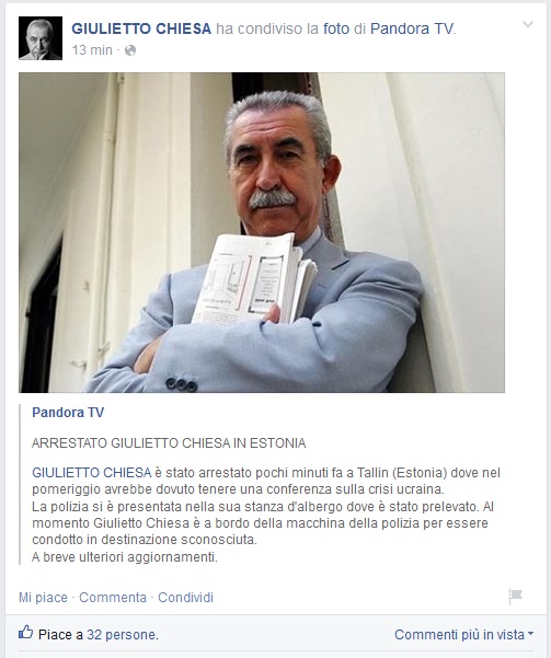Chiesa era stato contattato da San Pietroburgo, dove vive, per esprimere il proprio parere sugli attentati di Bruxelles e sull’azione dell’Isis. Sapientemente Giuseppe Cruciani e David Parenzo hanno cercato proprio Chiesa, noto per le sue posizioni non convenzionali. Addirittura, scrive il sito de La Zanzara, “complottista per definizione”.