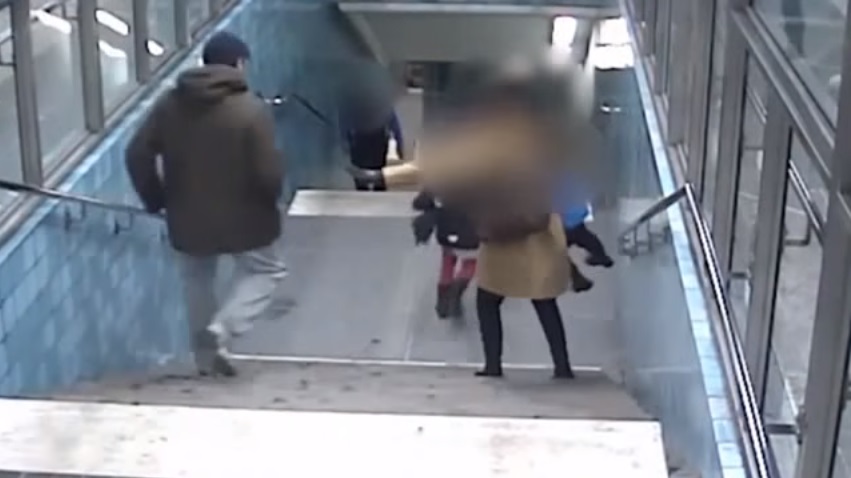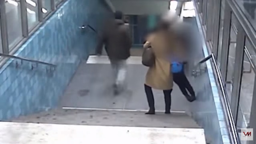 Succede tutto ad una stazione della metropolitana di Stoccolma. Una donna è sulle scale che la portano all’uscita: ha la borsa e una busta di tela. E’ distratta perché sta anche armeggiando con il telefono. Ad un certo punto, alle sue spalle spunta lui, il profugo cattivo. Sale le scale e capisce che quella donna è una preda facile. Si sposta sulla destra per scipparla ma in quel momento succede l’imponderabile.