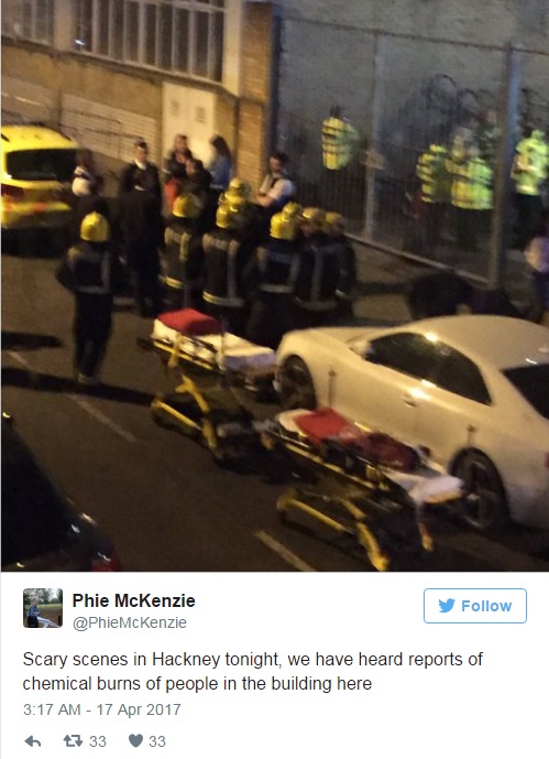 All’interno del club c’erano circa 600 persone. Nessuno dei presenti è stato al momento arrestato e le indagini sono tuttora in corso. La polizia ha precisato che non ci sono prove che si sia trattato dell’attacco di una gang. Un testimone ha pubblicato su Twitter alcune foto dell’evacuazione. “Scena terribile ad Hackney questa sera – ha scritto – ci è arrivata notizia di persone colpite da ustioni chimiche nel palazzo qui accanto”.