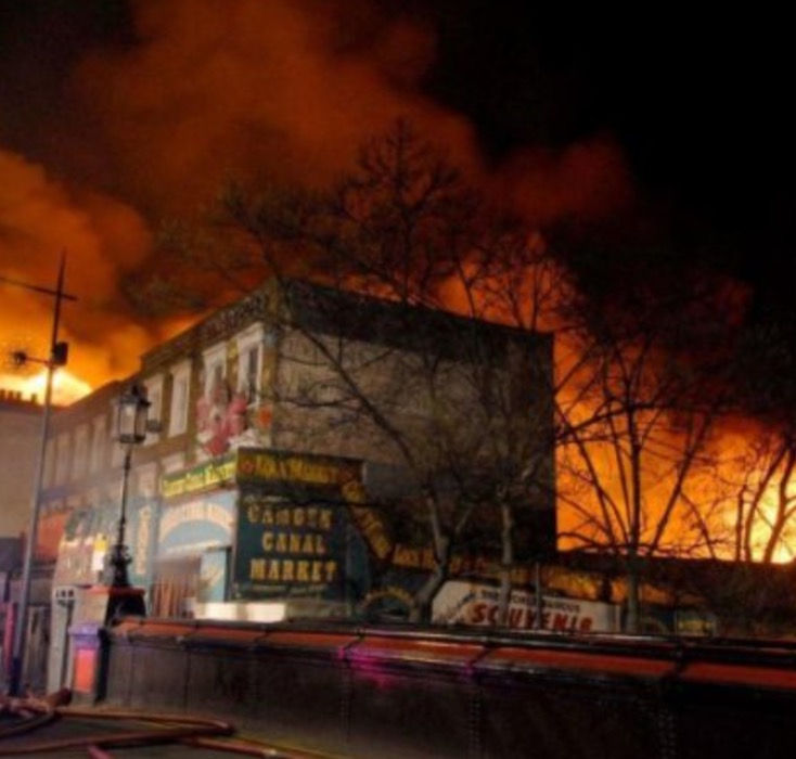 Non è la prima volta che le fiamme colpiscono Camden Market: un grosso incendio aveva distrutto una larga parte del mercato nel 2008, e i negozi all’interno del mercato rimasero chiusi per diversi mesi.