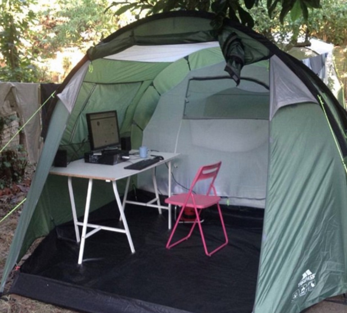 La proposta è di un proprietario di una casa che sul sito Airbnb affitta una tenda e la presenta come “casa ecologica” con un “home office” (ufficio in casa).
