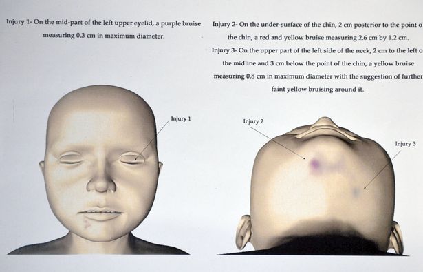 Dopo la morte di Ayeeshia, un esame post mortem ha rivelato una vecchia emorragia cerebrale e danni alla colonna vertebrale tra le altre lesioni che l’esperto Dr Kathryn Ward ha definito compatibili con la sindrome del bambino scosso.