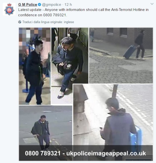Le immagini sono ricavate da alcune telecamere di sorveglianza, immortalano l’uomo nei giorni precedenti l’attentato a partire dal 18 maggio, data del suo rientro a Manchester dalla Libia.