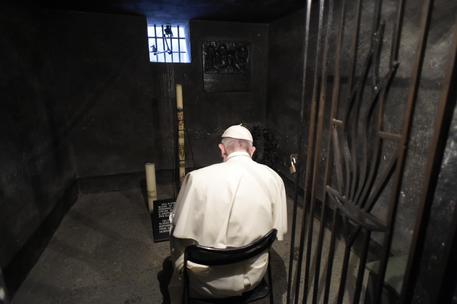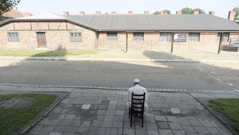 Quindi ha sostato in preghiera nella piazza dell’appello dove avvenivano le impiccagioni sommarie, si è fermato davanti al muro della morte dove i prigionieri venivano fucilati. Ha baciato uno dei pali della forca. Il contegno del Papa ha confermato la volontà di evitare discorsi e commemorazioni retoriche. Silenzio e preghiera hanno contraddistinto il suo passaggio, come da programma: “Io vorrei andare in quel posto di orrore senza discorsi, senza gente, solo i pochi necessari. Da solo entrare, pregare e che il Signore mi dia la grazia di piangere per questo”, aveva annunciato il 26 giugno scorso, nella conferenza stampa sul volo di rientro dall’Armenia.