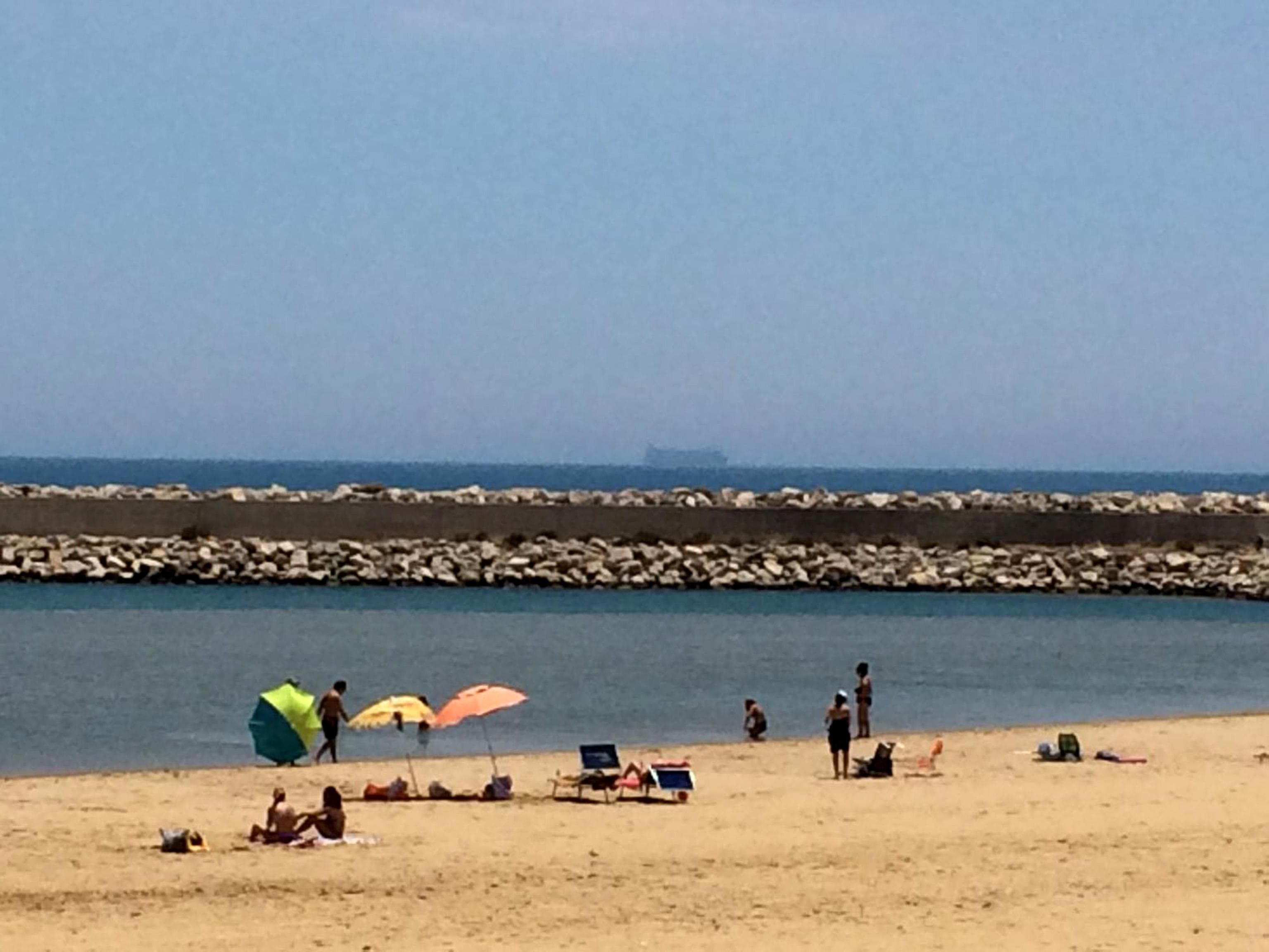 Il cargo fermo davanti alle spiagge dei turisti (foto Ansa)