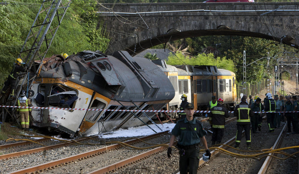 In segno di cordoglio è stata sospesa oggi la campagna elettorale per le elezioni regionali galiziane del 25 settembre. Ambulanze, pompieri ed elicotteri dei servizi di emergenza sono stati fatti convergere sul luogo dell’incidente. Il treno aveva lasciato in mattinata Vigo in Galizia ed era diretto ad Oporto, la capitale del Portogallo del Nord, con circa 60 passeggeri a bordo. Secondo le prime ricostruzioni riportate da El Faro de Vigo online che cita alcuni testimoni, il primo vagone è deragliato ed ha urtato una postazione elettrica. Altri due vagoni sono a loro volta usciti dai binari. Il macchinista portoghese è morto nell’incidente. La linea Oporto-Vigo è operata congiuntamente dalle società ferroviarie di Spagna e Portogallo, Renfe e Comboios do Portugal.