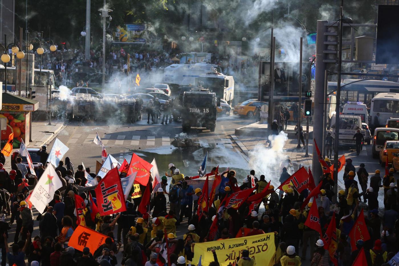Il governatore della megalopoli del Bosforo Huseyin Mutlu ha vietato ogni corteo. Ma la Piattaforma Taksim, che l’anno scorso ha accompagnato la rivolta dei ragazzi di Gezi Park, ha invitato comunque a manifestare sulla storica piazza della sinistra turca, ma anche a Ankara, Smirne e in molte altre città del paese, accusando il governo di violare l’articolo 34 della costituzione, che garantisce la libertà di espressione. Dalla grande rivolta di Gezi, il governo ha vietato, e impedito con la forza, ogni concentrazione su Taksim, come pure sull’altro luogo simbolo della protesta dell’anno scorso, Piazza Kizilay a Ankara. Il leader dell’opposizione Kemal Kilicdaroglu oggi ha messo in guardia contro possibili “provocazioni” da parte della polizia o di militanti del partito islamico Akp di Erdogan. “Il governo cercherà di provocare agitazione. Evitate la gente armata e con il volto coperto. Sono provocatori” ha avvertito.