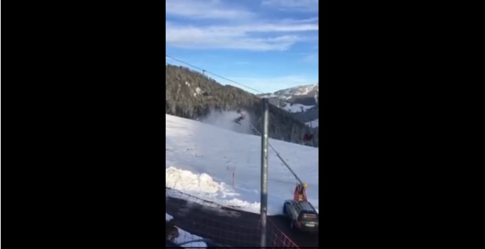 VIENNA – Immaginate di rimanere bloccati su una seggiovia mentre vi state preparando per scendere la vostra pista da sci. Se già questo è uno spiacevole evento, i due poveri sciatori hanno dovuto subire anche la beffa di venire investiti dallo sparo di un cannone della neve che si è azionato nella loro direzione proprio mentre la linea non voleva saperne di rimettersi in moto.