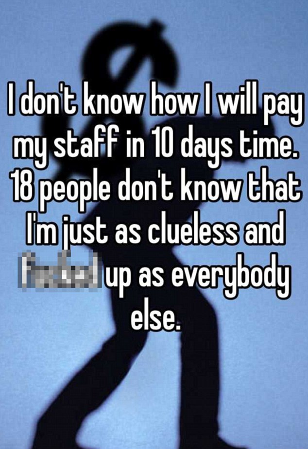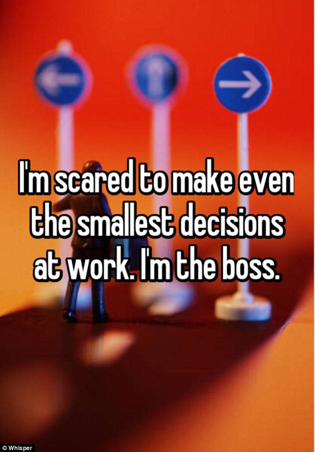 Ci sono anche affermazioni di notevole mancanza di autostima:”Ho paura a prendere anche le più piccole decisioni. Sono il boss”, scrive un utente. E un altro, con spietata sincerità (grazie solo all’anonimato) ammette:”Sono l’amministratore delegato di una società in un settore di cui non so nulla”.