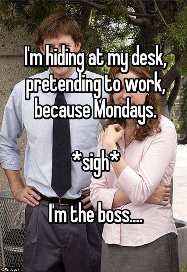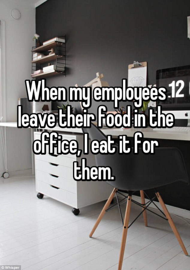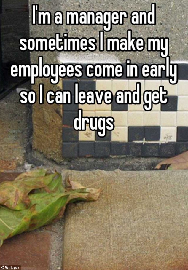 Un altro afferma:”Sono un manager e a volte faccio arrivare in anticipo i dipendenti così posso andarmene e prendere la droga”. Una persona ha rivelato che, nonostante la fiducia del personale, si sentiva un incompetente:”Non so come potrò pagare lo staff tra 10 giorni. 18 persone non sanno che sono solo un incapace e stronzo come tutti gli altri”. Ma su Whisper emergono anche problemi di rabbia:”Il più delle volte vorrei prendere a pugni in faccia i miei dipendenti”, scrive un manager mentre un altro ammette: “Quando lasciano il loro cibo in ufficio, lo mangio”.