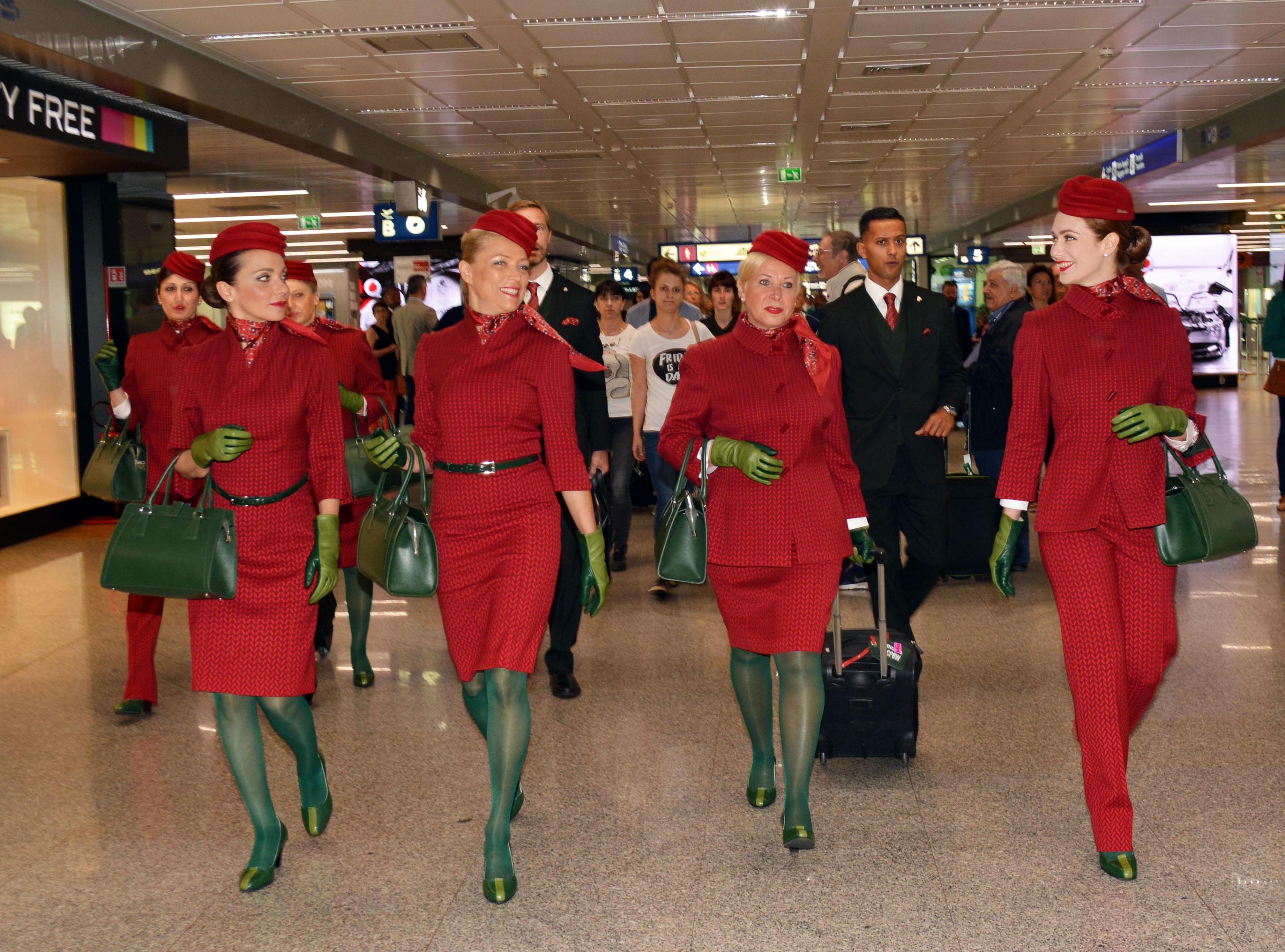 Quelle per gli steward sono state realizzate in Puglia. Imponente anche la macchina organizzativa attivata dalla compagnia italiana per distribuire le nuove divise: in poco più di 15 giorni, infatti, sono state consegnate tutto il set di divise agli oltre 3.500 assistenti di volo.