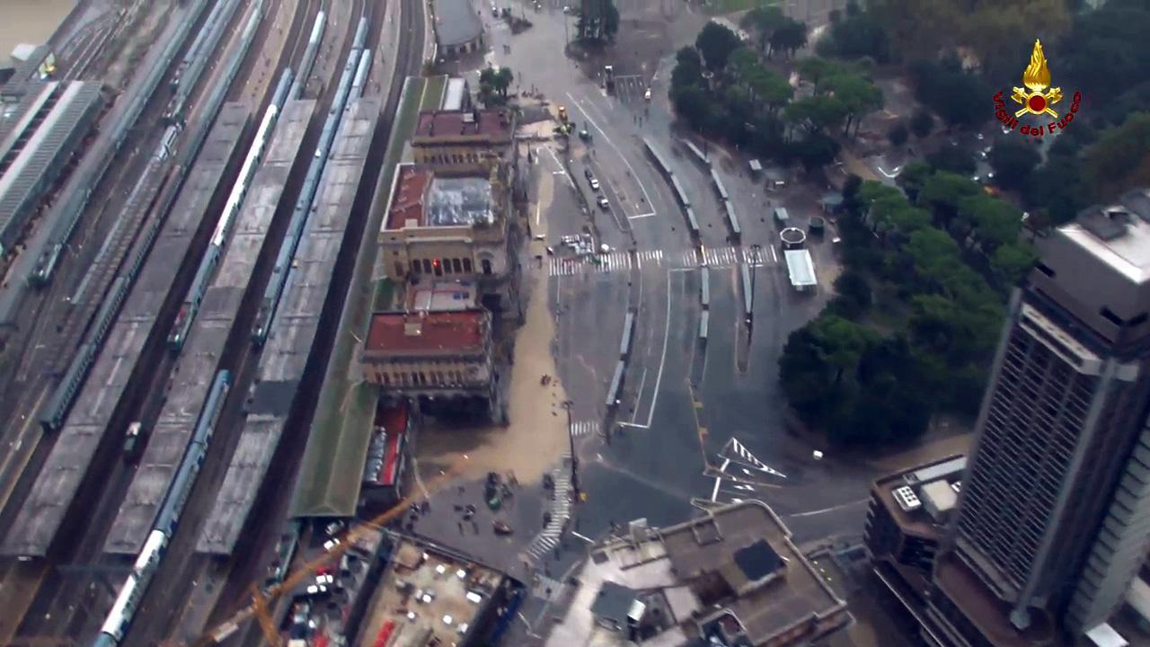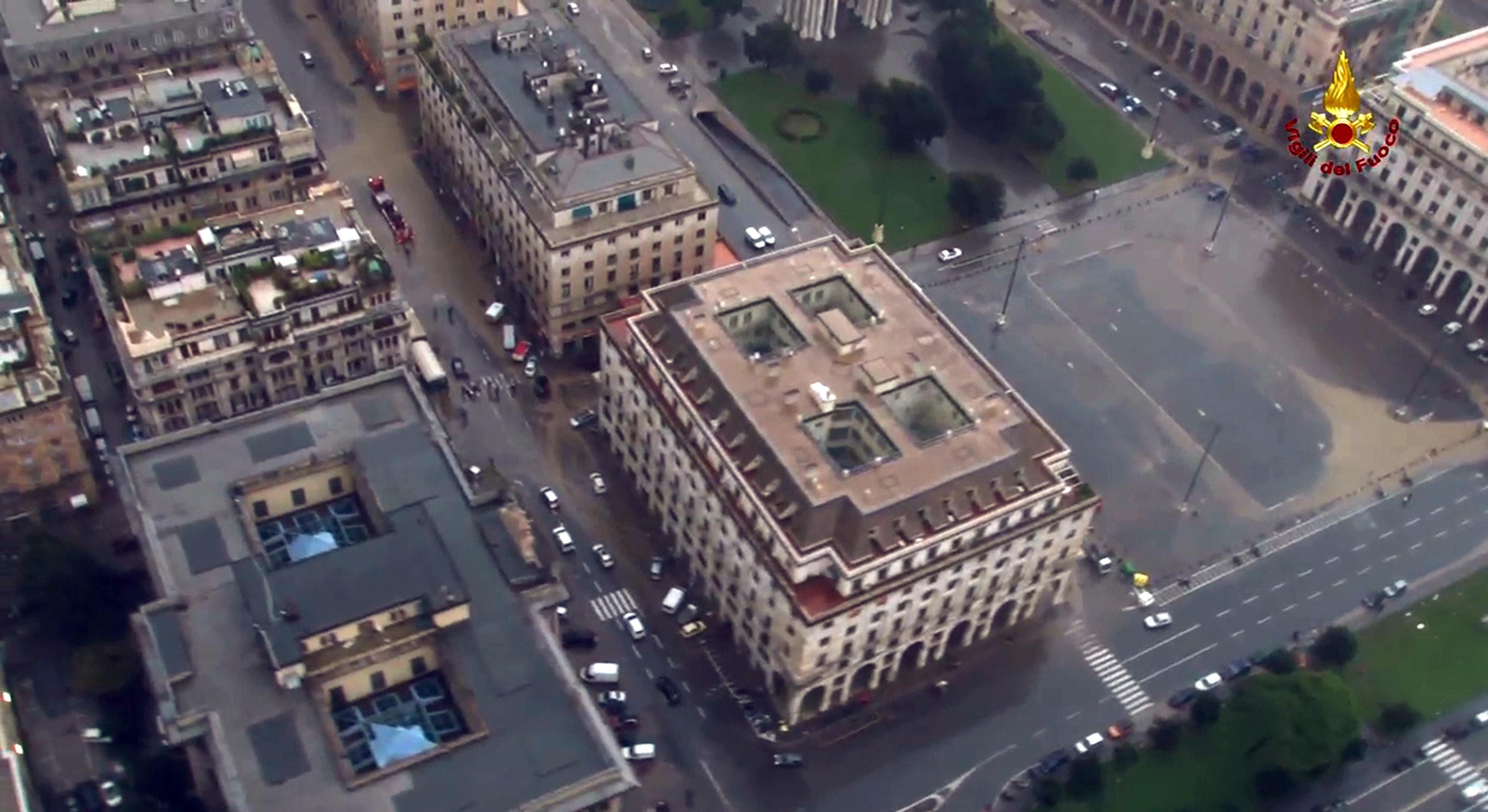 La città di Genova si sveglia dopo la violenta pioggia che nella notte ha provocato un morto e allagamenti in varie parti di Genova, 10 ottobre 2014.