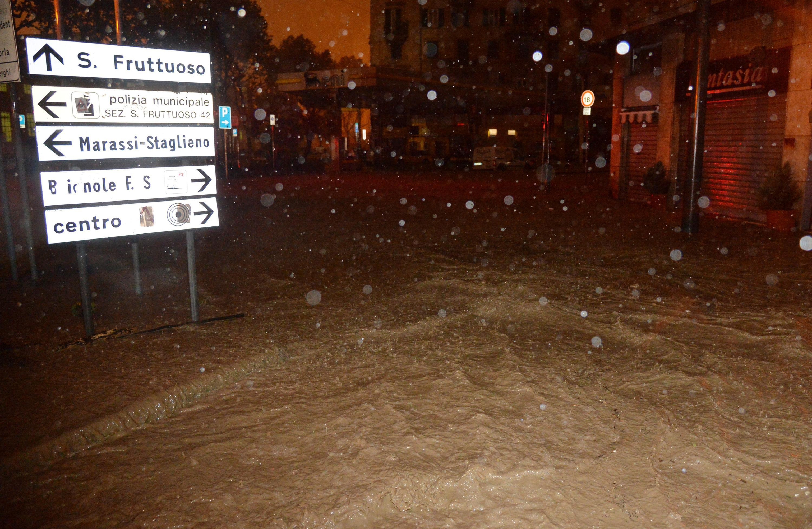 L’esondazione del fiume Bisagno nel quartiere San Fruttuoso di Genova, 10 ottobre 2014.