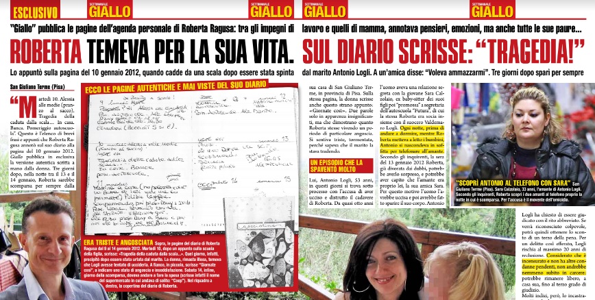 Roberta Ragusa è scomparsa nella notte tra il 13 e il 14 gennaio 2012 – che rallentano con la propria auto passando di fronte alla casa dove sono chiusi da questa mattina Antonio, la compagna Sara Calzolaio e i due figli di Roberta. I vicini si affacciano per vedere cosa accada mentre i giornalisti cominciano ad assieparsi di fronte al cancello di via Ulisse Dini a Gello (San Giuliano Terme). Questa mattina è stata chiesta la custodia cautelare per Logli.