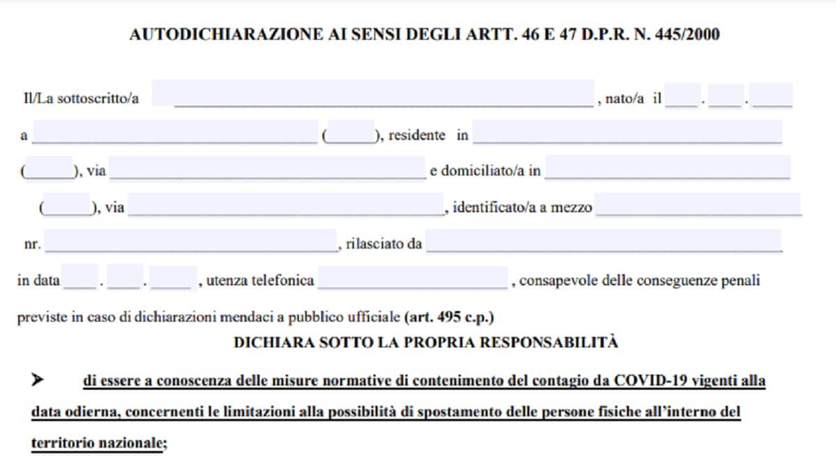 Autocertificazione zona rossa: scarica il PDF dell'autocertificazione per le Regioni zona rossa