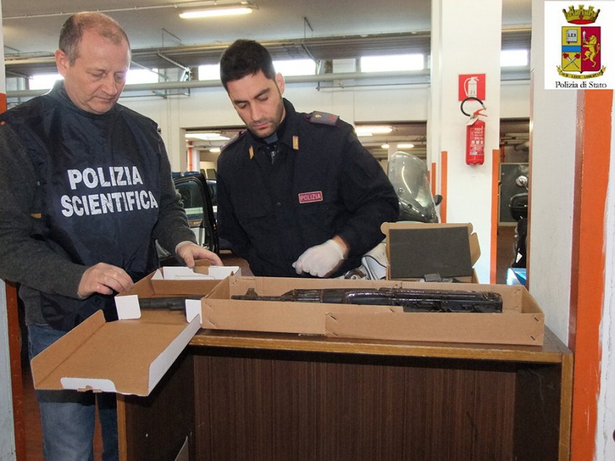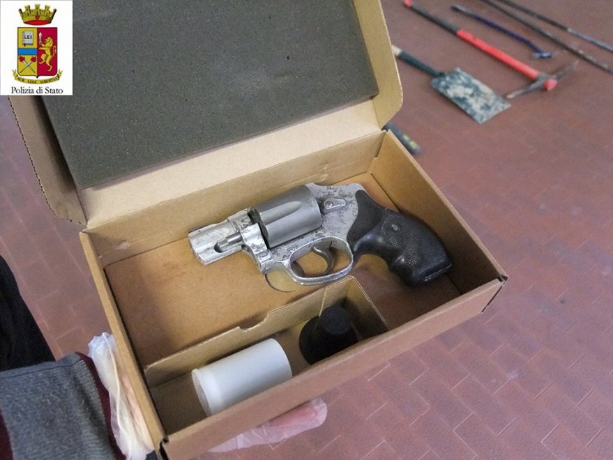 Con un balzo i tre occupanti sono scesi dalla Bmw, saltando il guardrail, ed hanno guadagnato terreno in mezzo alla campagna, inseguiti dagli agenti, prima di scavalcare una rete di recinzione e scomparire. Non c’è stato conflitto a fuoco. I tre sconosciuti, tuttavia, erano armati fino ai denti. Vicino all’auto i poliziotti hanno recuperato un giubbotto di colore blu e un mitra kalashnikov, con 10 munizioni nel caricatore. Dentro la Bmw è stata trovata una scatola metallica con due pistole, un revolver e una semiautomatica, entrambe cariche e un secondo caricatore del kalashnikov, quindi un ‘jammer’, un sistema che disturba le frequenze dei cellulari, due sacchetti 15×15 pieni di polvere pirica, alluminio e resistenze, fili elettrici, esplosivo per far saltare gli sportelli bancomat. Nel bagagliaio attrezzi da scasso e le targhe originali della Bmw.