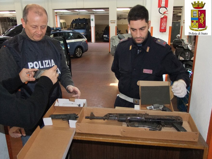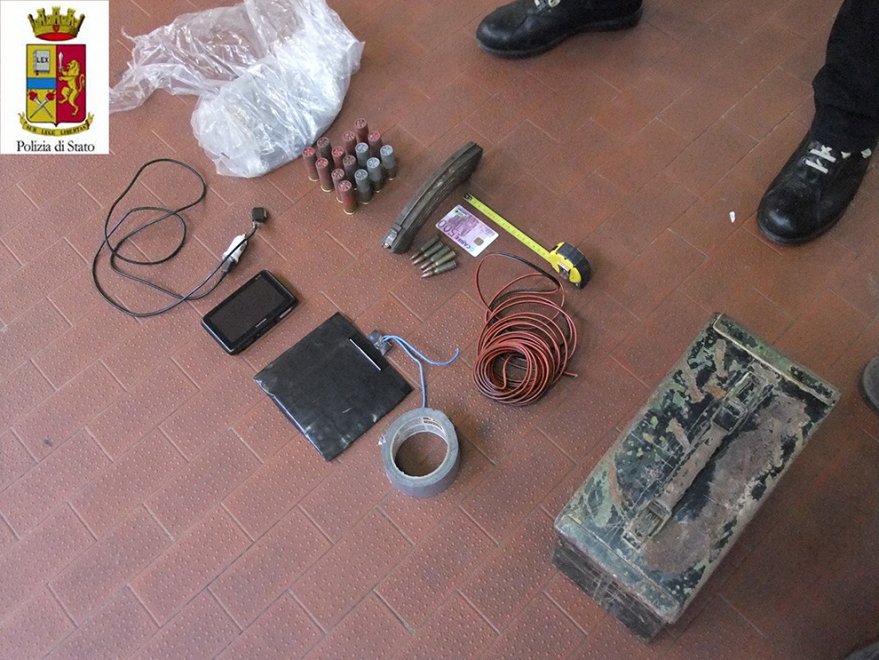 Con un balzo i tre occupanti sono scesi dalla Bmw, saltando il guardrail, ed hanno guadagnato terreno in mezzo alla campagna, inseguiti dagli agenti, prima di scavalcare una rete di recinzione e scomparire. Non c’è stato conflitto a fuoco. I tre sconosciuti, tuttavia, erano armati fino ai denti. Vicino all’auto i poliziotti hanno recuperato un giubbotto di colore blu e un mitra kalashnikov, con 10 munizioni nel caricatore. Dentro la Bmw è stata trovata una scatola metallica con due pistole, un revolver e una semiautomatica, entrambe cariche e un secondo caricatore del kalashnikov, quindi un ‘jammer’, un sistema che disturba le frequenze dei cellulari, due sacchetti 15×15 pieni di polvere pirica, alluminio e resistenze, fili elettrici, esplosivo per far saltare gli sportelli bancomat. Nel bagagliaio attrezzi da scasso e le targhe originali della Bmw.