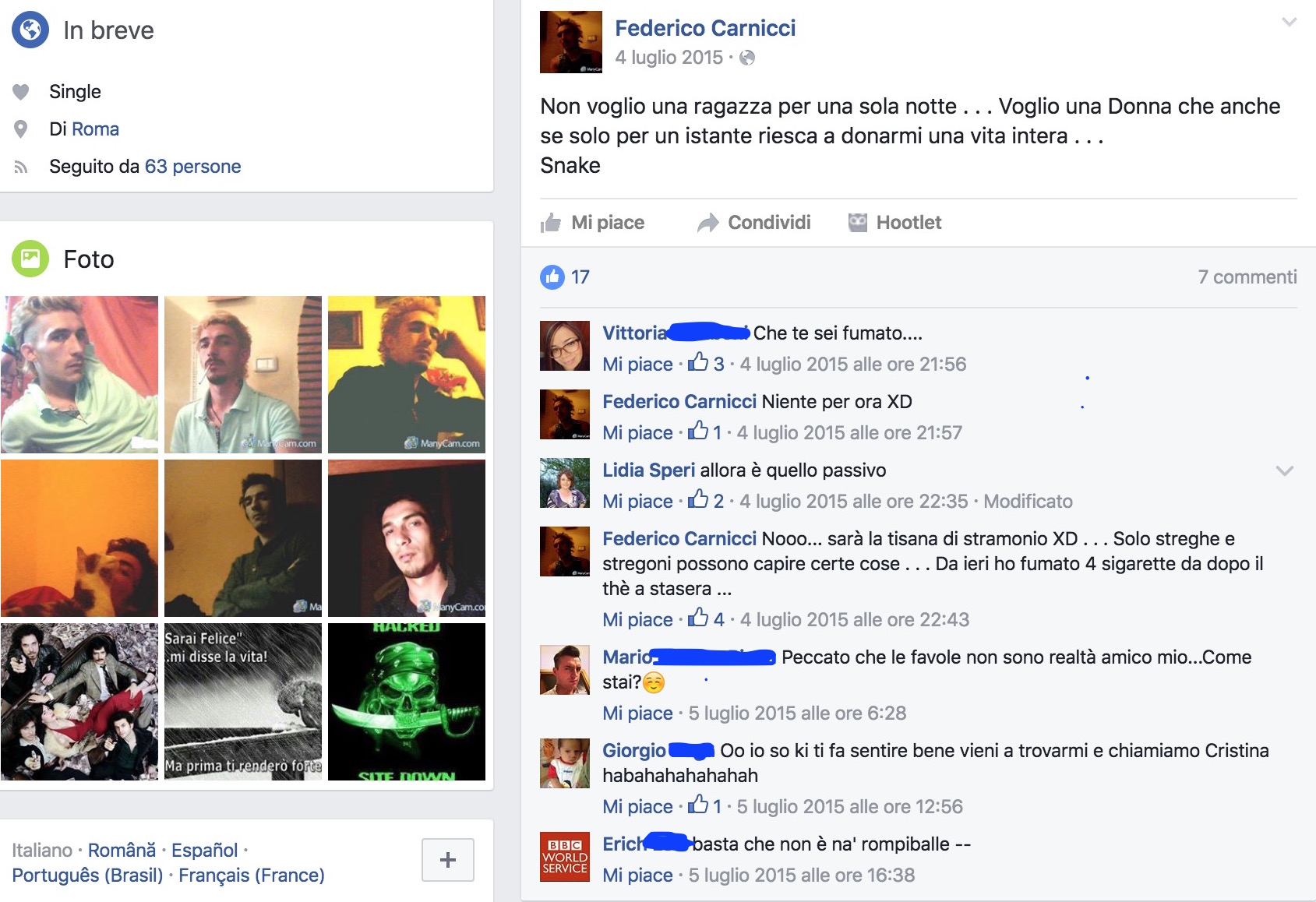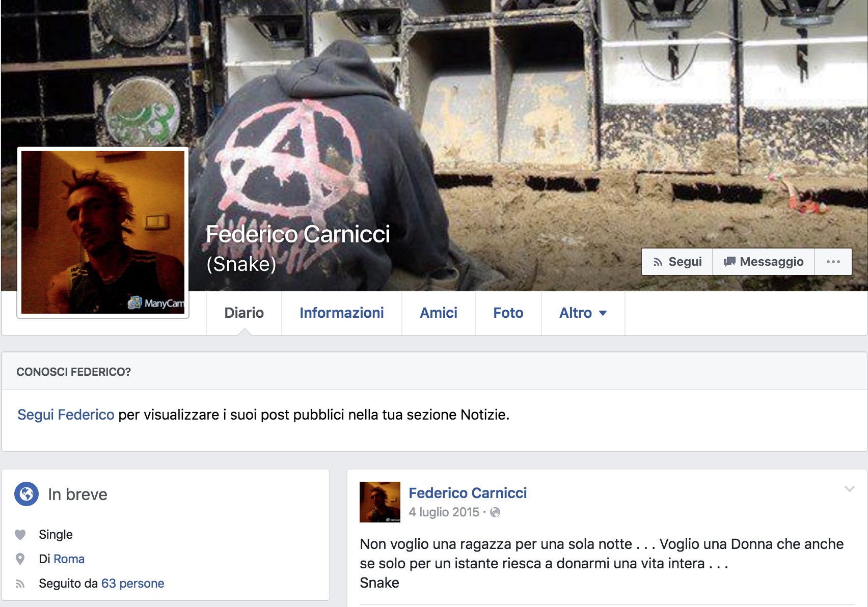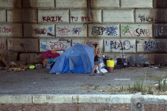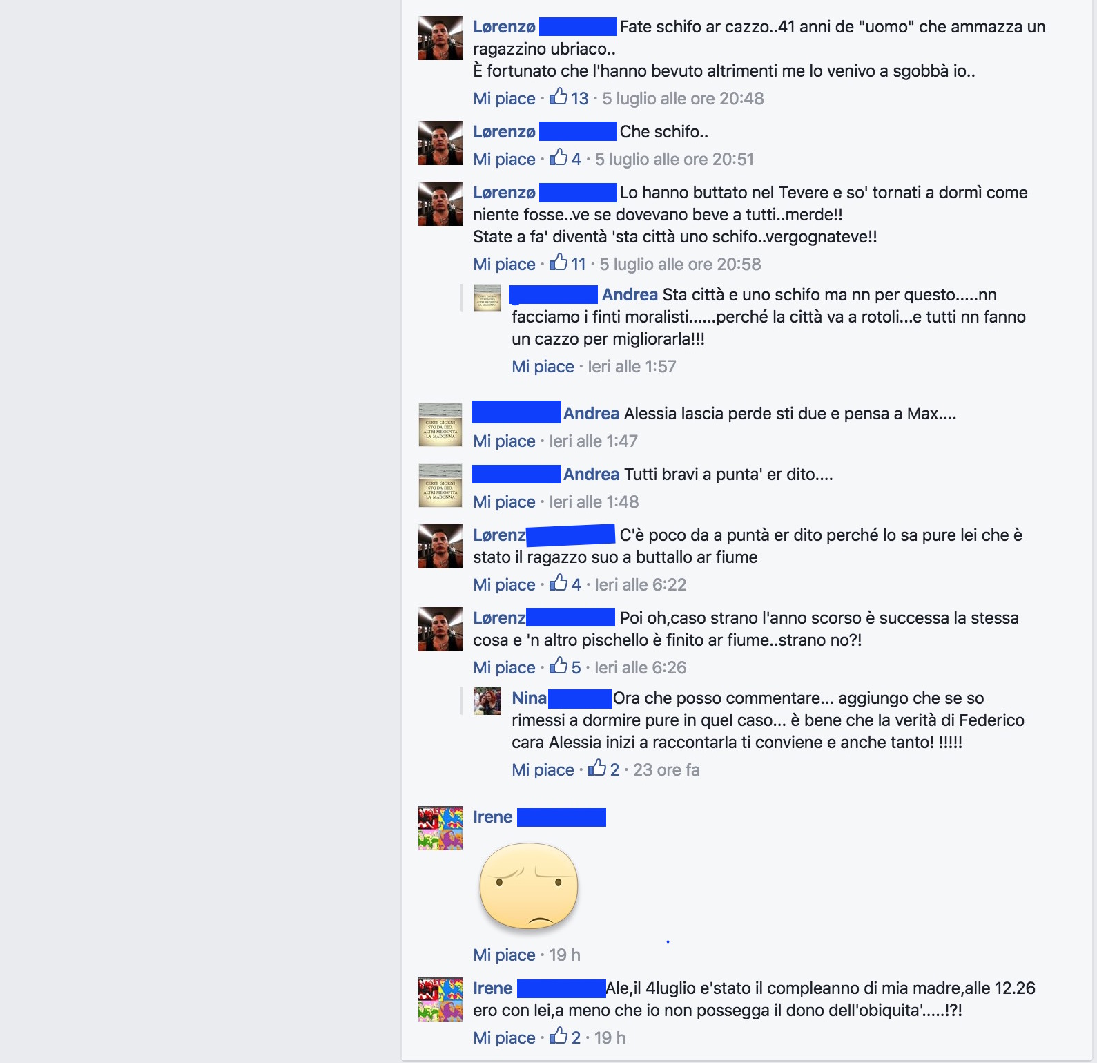 Siamo sulla banchina, Solomon è ancora vivo seppur furioso per il furto del portafoglio. Ma si trova sulla riva sbagliata del Tevere. Dall’altra parte ci sono gli stand che animano ogni estate la vita notturna del fiume. Da questa c’è un agglomerato di tende e giacigli di un gruppo di punkabbestia, sgomberato oggi (14 luglio) su ordine del sindaco Virginia Raggi. Fra questi c’è il quarantunenne Massimo Galioto, siciliano. Che – svegliato dalle urla del giovane americano – reagisce con violenza.