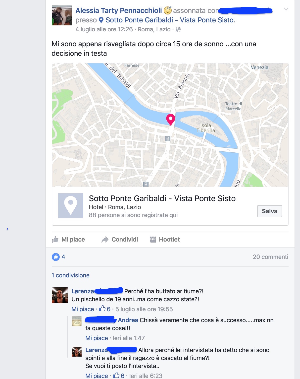 […] A incastrare Galioto, oltre ai fotogrammi ripresi dalle telecamere di sorveglianza puntate sul fiume, sono state le dichiarazioni della compagna Alessia Pennacchioli e di un amico.