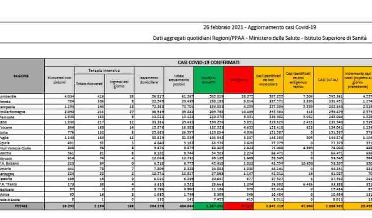 Bollettino coronavirus del 26 febbraio: oltre 400mila i positivi in Italia