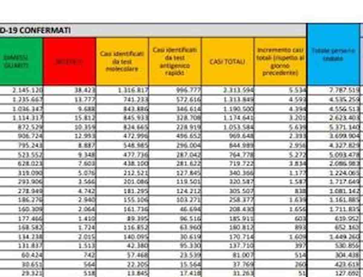 Sono 12.603.758 gli italiani contagiati dal Covid dall’inizio della pandemia, secondo i dati del ministero della Salute.