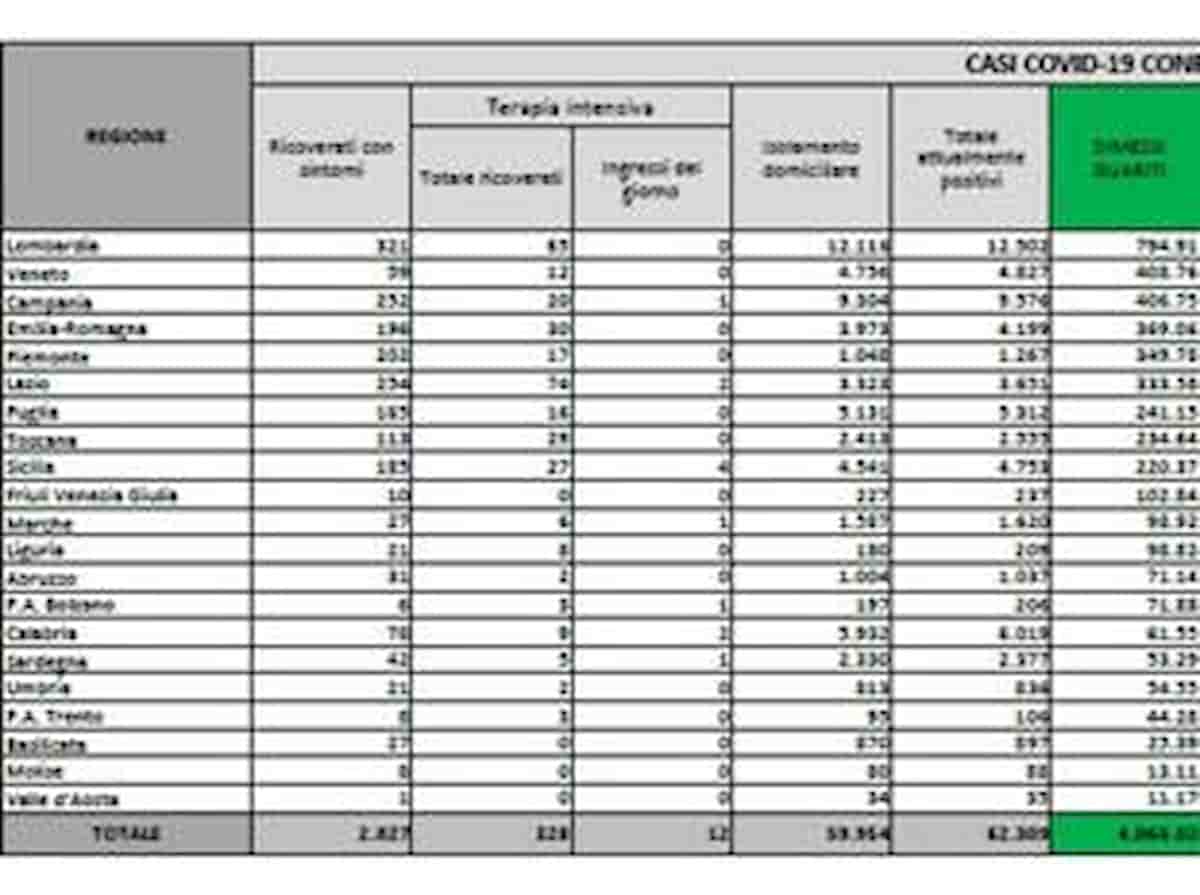 Bollettino coronavirus: i casi dall’inizio della pandemia di Covid