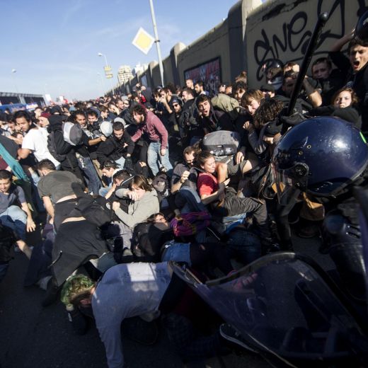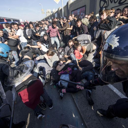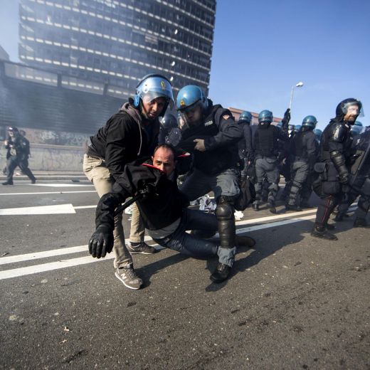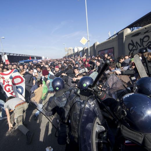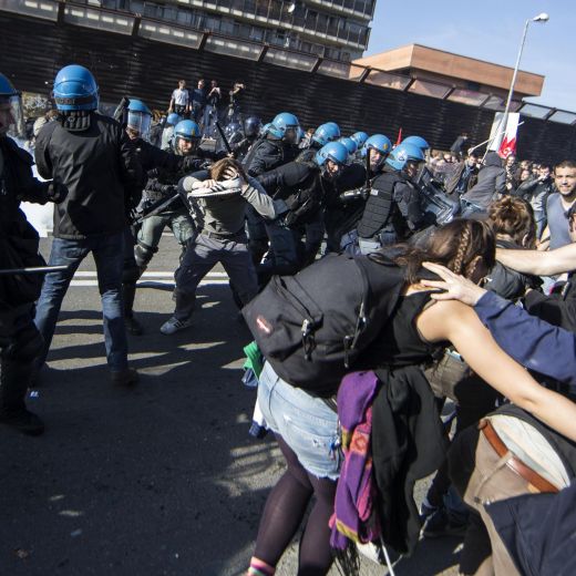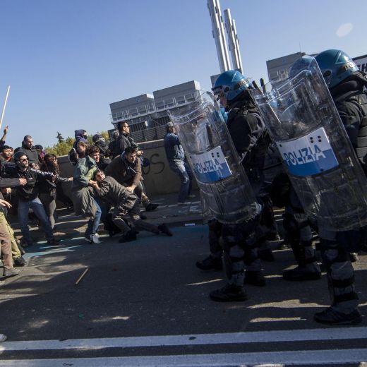 Uova contro la polizia. Le cariche sono partite quando uno dei cortei che protesta contro la manifestazione della Lega ha tentato di forzare il blocco prima dei viali di circonvallazione sul ponte di via Stalingrado. Sul ponte ferroviario si erano ritrovati attivisti, circa 500, appartenenti a collettivi e centri sociali di Crash, Cua, Xm24 e Social Log. Dopo la prima carica che ha respinto sul ponte il corteo, ne è seguita una seconda. Nel frattempo dalla parte opposta sono arrivati altri manifestanti e c’è stato un lancio di uova contro le forze dell’ordine.