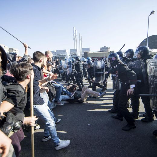 BOLOGNA, 8 NOV – Con l’arrivo di Matteo Salvini, a Bologna è scoppiato il caos. Tutto inizia all’alba quando ignoti hanno appiccato il fuoco in quattro punti della linea ferroviaria dell’Alta velocità Bologna-Milano e hanno scritto a terra con della vernice rossa: “Sabotiamo un mondo di razzisti e di frontiere”, chiaro riferimento all’arrivo di Matteo Salvini e del popolo leghista nel capoluogo emiliano. Poi gli scontri e le cariche. Un poliziotto e almeno un manifestante ferito e due arresti.