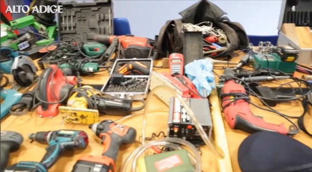 Il quotidiano Alto Adige in un servizio video scrive che oltre alla refurtiva da migliaia di euro composta da portatili e diversi attrezzi edili, gli agenti hanno trovato anche tre coltelli, un bilancino di precisione e 5 grammi di hashish: