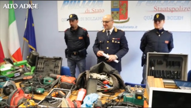 Il quotidiano Alto Adige in un servizio video scrive che oltre alla refurtiva da migliaia di euro composta da portatili e diversi attrezzi edili, gli agenti hanno trovato anche tre coltelli, un bilancino di precisione e 5 grammi di hashish: