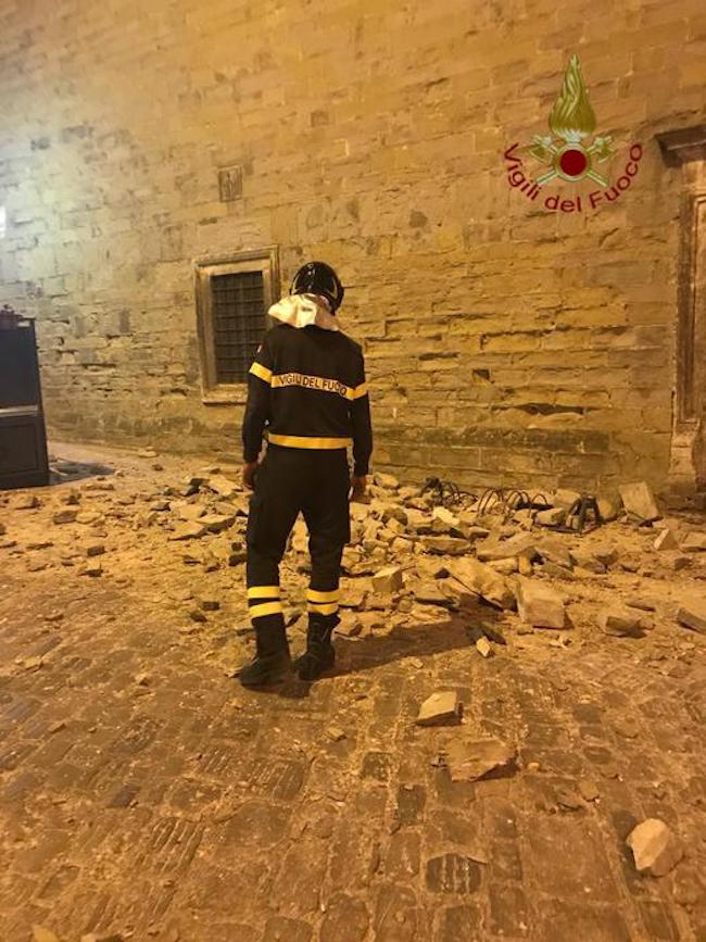 Il materiale, in pietra arenaria, è finito sulla strada senza comunque colpire persone. Sono intervenuti i vigili del fuoco del locale distaccamento, anche con un’autoscala giunta da Perugia, personale del Comune che ha messo in sicurezza l’area e i carabinieri.