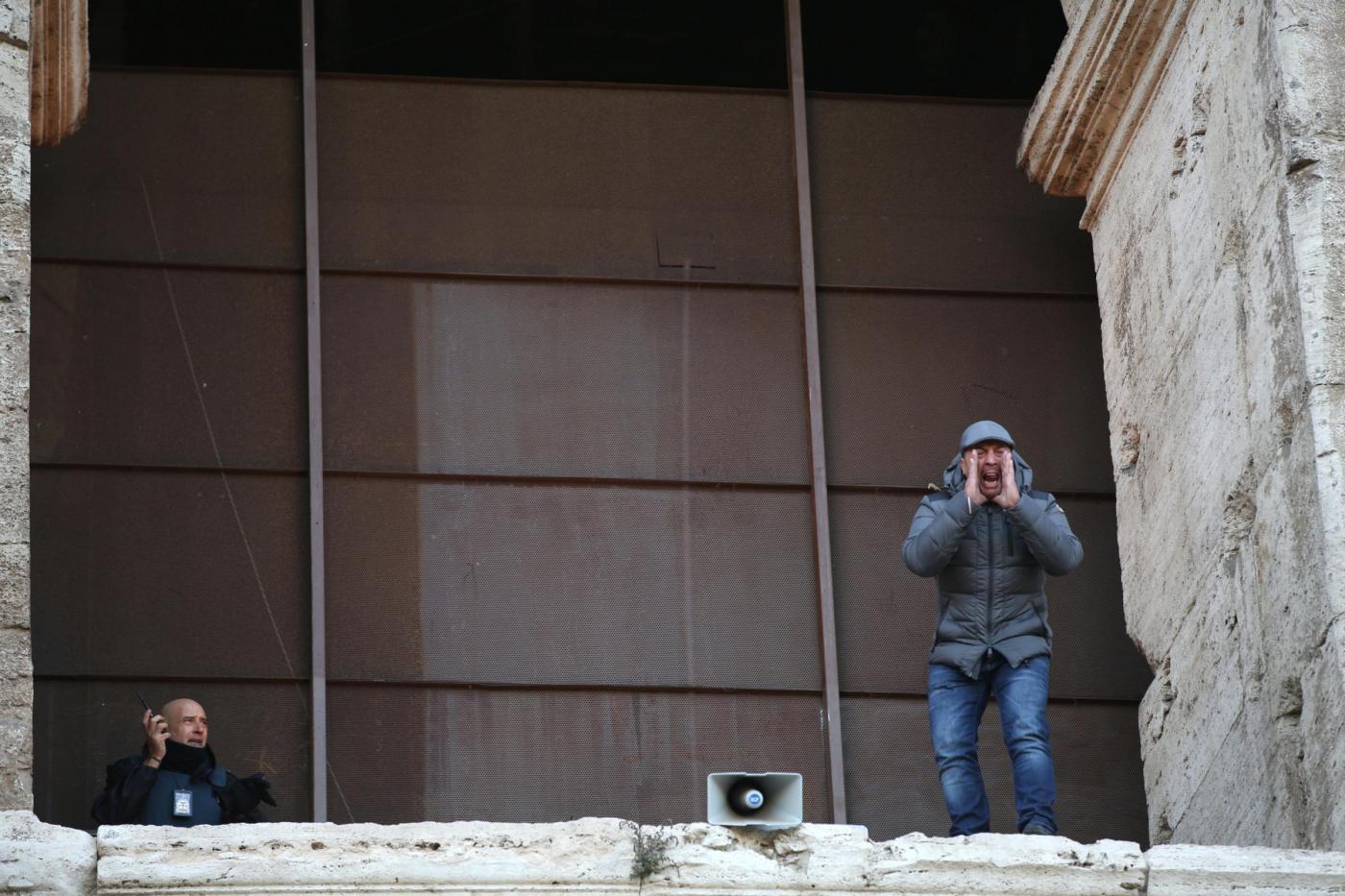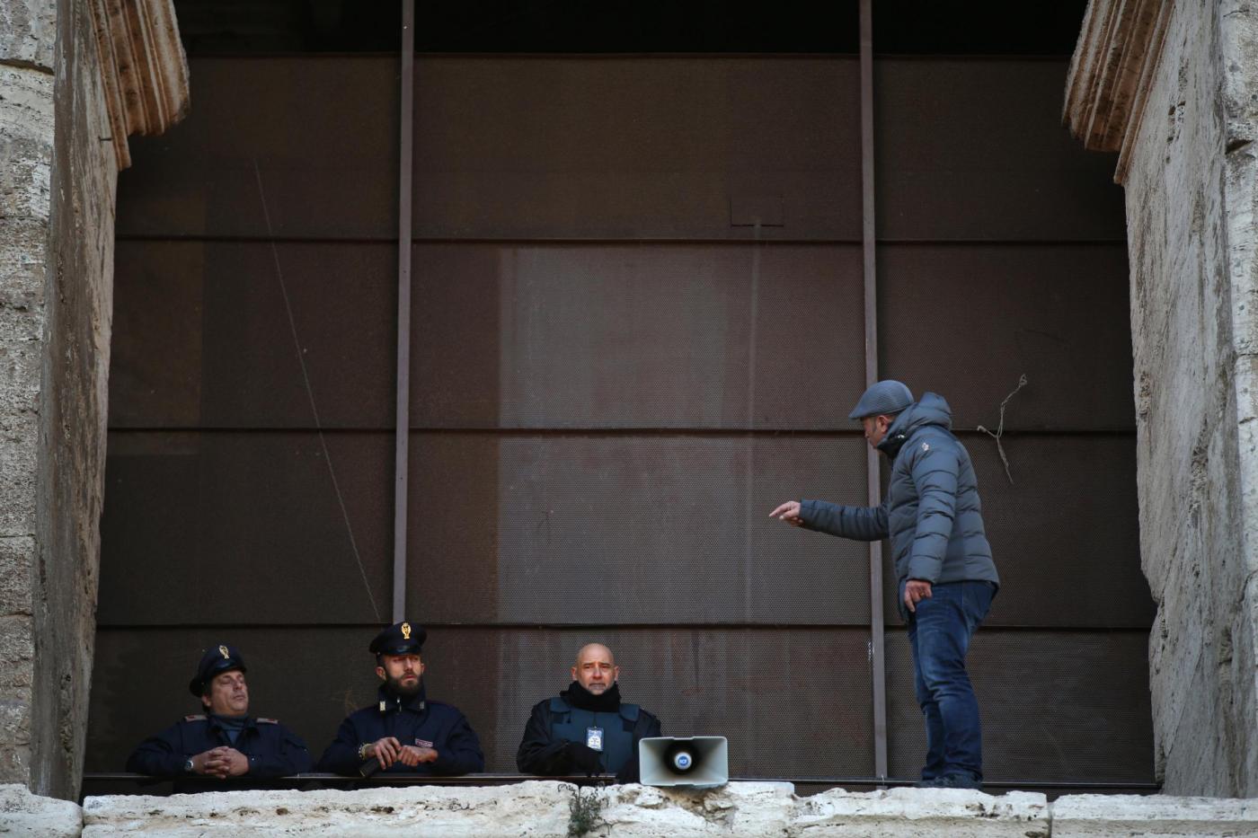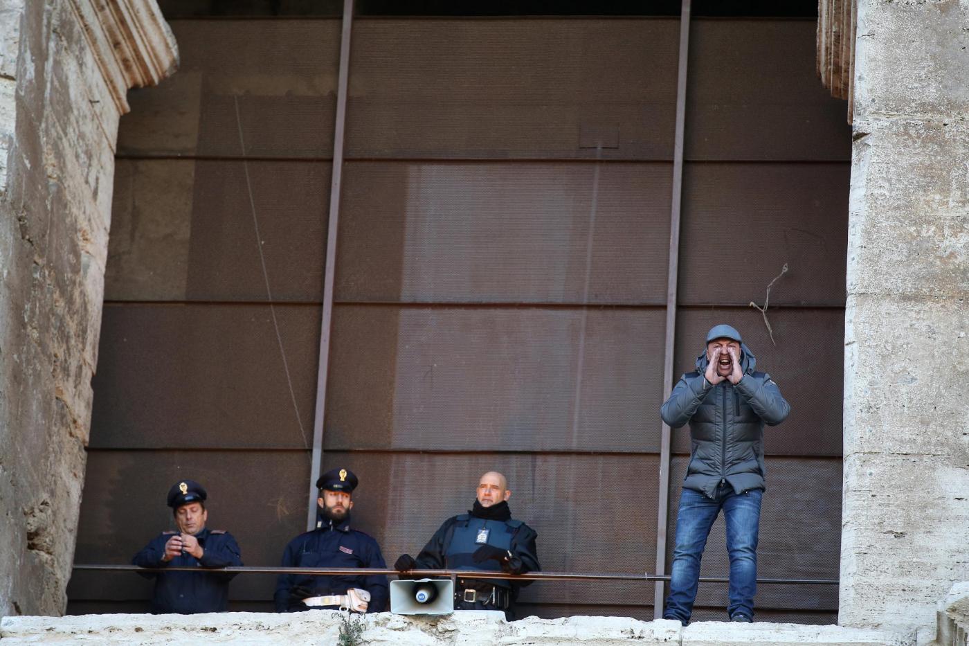 L’uomo, nelle due ore sul Colosseo, ha gridato rivolto in basso ai passanti che si sono fermati ad osservarlo: “Tronca, facce lavorà”. Sul posto sono giunti anche gli agenti della Polizia Locale di Roma Capitale e il personale del 118.